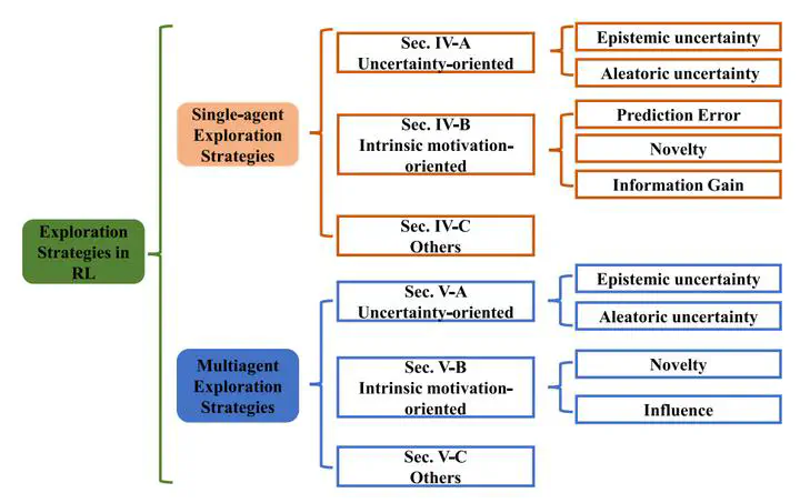 Image credit: Chenjia BaiDeep reinforcement learning (DRL) and deep multiagent reinforcement learning (MARL) have achieved significant success across a wide range of domains, including game artificial intelligence (AI), autonomous vehicles, and robotics. However, DRL and deep MARL agents are widely known to be sample inefficient that millions of interactions are usually needed even for relatively simple problem settings, thus preventing the wide application and deployment in real-industry scenarios. One bottleneck challenge behind is the well-known exploration problem, i.e., how efficiently exploring the environment and collecting informative experiences that could benefit policy learning toward the optimal ones. This problem becomes more challenging in complex environments with sparse rewards, noisy distractions, long horizons, and nonstationary co-learners. In this article, we conduct a comprehensive survey on existing exploration methods for both single-agent RL and multiagent RL. We start the survey by identifying several key challenges to efficient exploration. Then, we provide a systematic survey of existing approaches by classifying them into two major categories: uncertainty-oriented exploration and intrinsic motivation-oriented exploration. Beyond the above two main branches, we also include other notable exploration methods with different ideas and techniques. In addition to algorithmic analysis, we provide a comprehensive and unified empirical comparison of different exploration methods for DRL on a set of commonly used benchmarks. According to our algorithmic and empirical investigation, we finally summarize the open problems of exploration in DRL and deep MARL and point out a few future directions.
